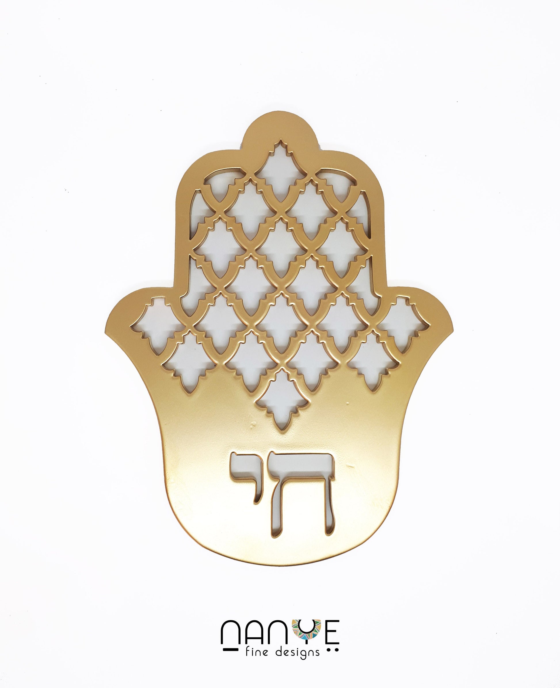 Celebrate life, light, and protection with the Hai Gold Hamsa – a handcrafted metal wall piece that shines with deep meaning. The Hebrew word "חי" (Hai), meaning "life", is delicately laser-cut into the center of this golden Hamsa, blending sacred symbolism with timeless elegance.